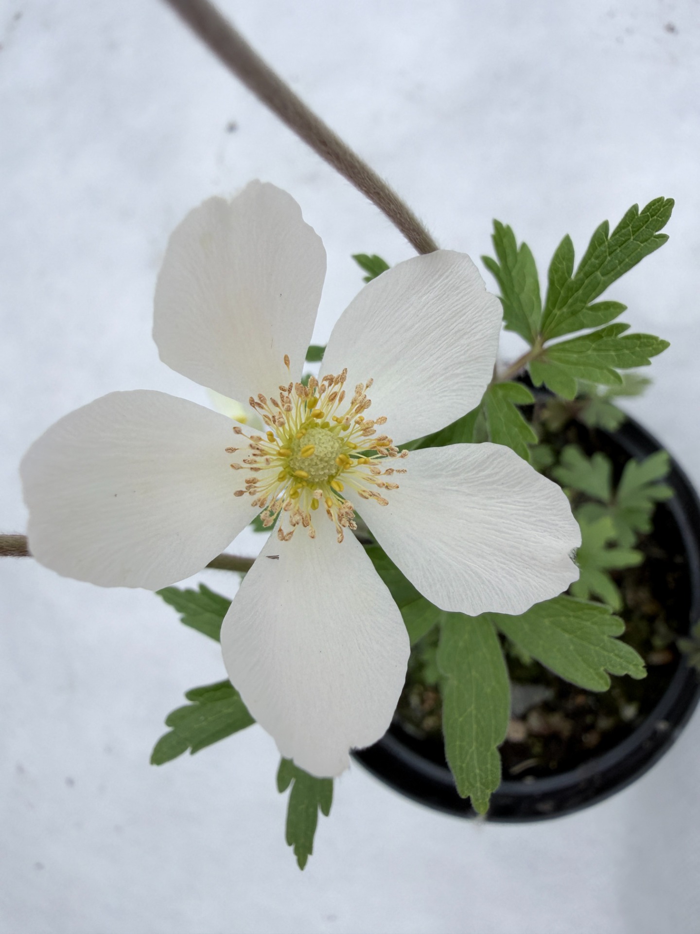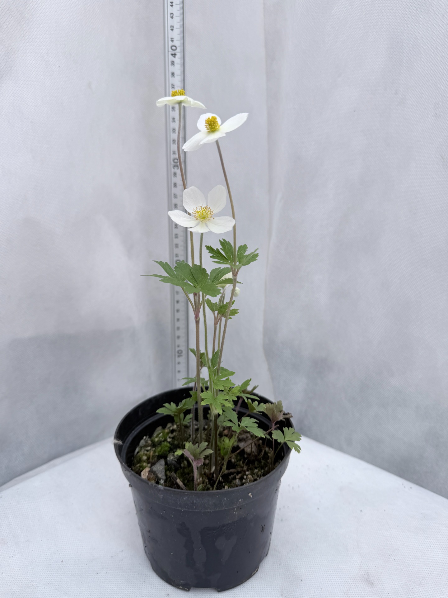 Anemone × hybrida, Anemone japonica ( Sasanka hybridní, sasanka japonská) je trsnatá trvalka z čeledi pryskyřníkovitých (Ranunculaceae), která vznikla křížením asijských druhů (A. hupehensis var. japonica a A. vitifolia). Květy jsou bílé, miskovité, jednoduché se žlutým středem, nesené na vysokých, štíhlých, ale pevných stoncích. Začíná kvést obvykle na přelomu jara a léta a při optimálních podmínkách kvete až do prvních mrazů. Dosahuje výšky 40 - 60 cm. Ideální je polostín nebo světlý stín, kde je chráněna před úpalem poledního slunce. Je plně mrazuvzdorná, nesnáší přemokření.
