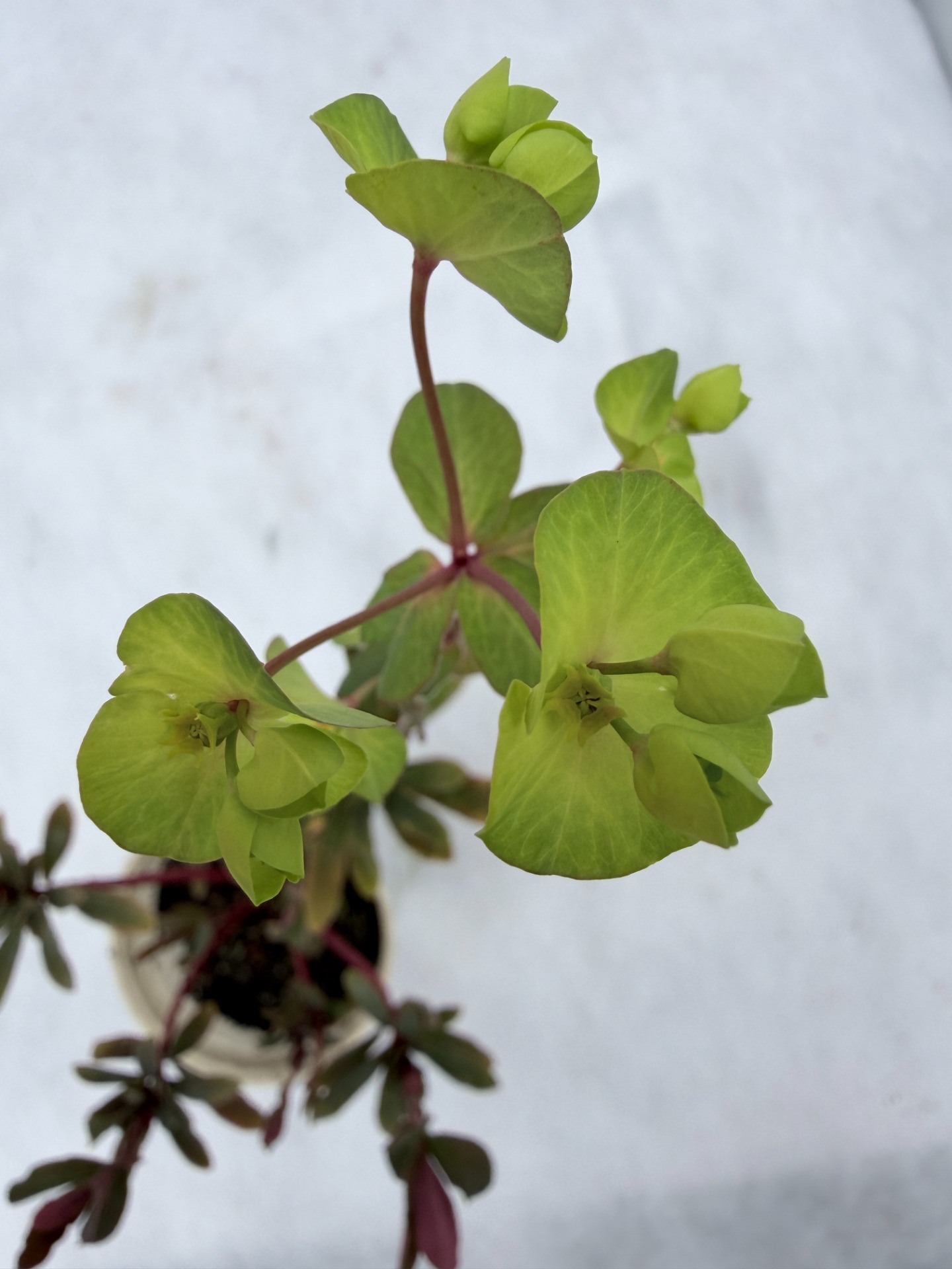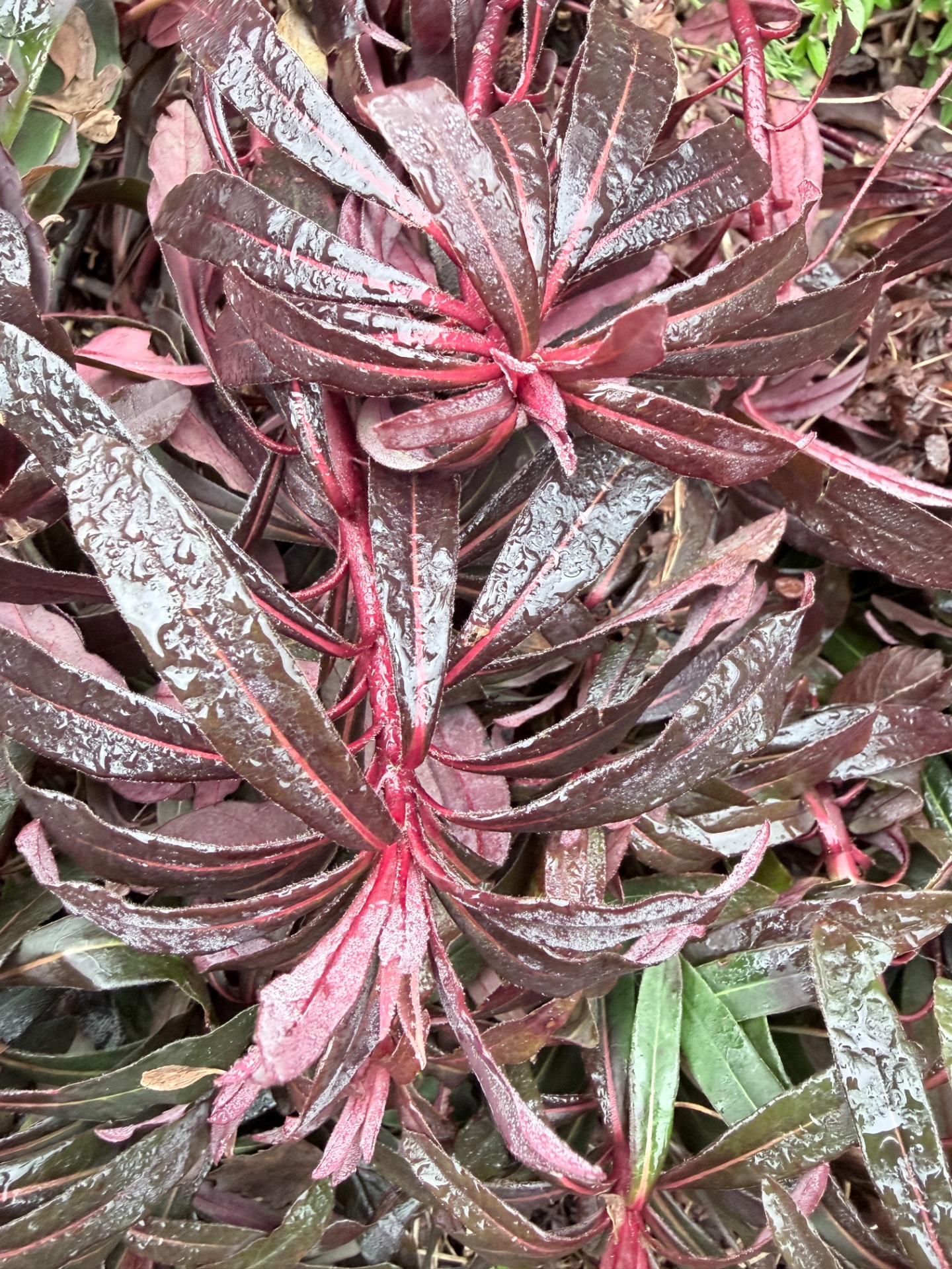 Euphorbia amygdaloides 'Purpurea' ( Pryšec mandloňovitý 'Purpurea') je atraktivní, stálezelená trvalka, která vyniká především svými purpurově vínovými listy a stonky. Vytváří kompaktní, polštářovité trsy s dřevnatějícími stonky. Úzké, kopinaté listy mají sytě purpurovou až vínovou barvu, která přetrvává po celý rok. Kvete od dubna do června (někdy až do července) svítivě žlutozelenými listeny, které kontrastují s tmavým olistěním. Dorůstá obvykle 30–50 cm. Nejlépe prospívá na slunci až v polostínu, ale snese i stín. Na slunném místě bývá vybarvení listů intenzivnější. Je plně mrazuvzdorná, nenáročná. Ideální do trvalkových záhonů, jako podrost pod stromy nebo do nádob.