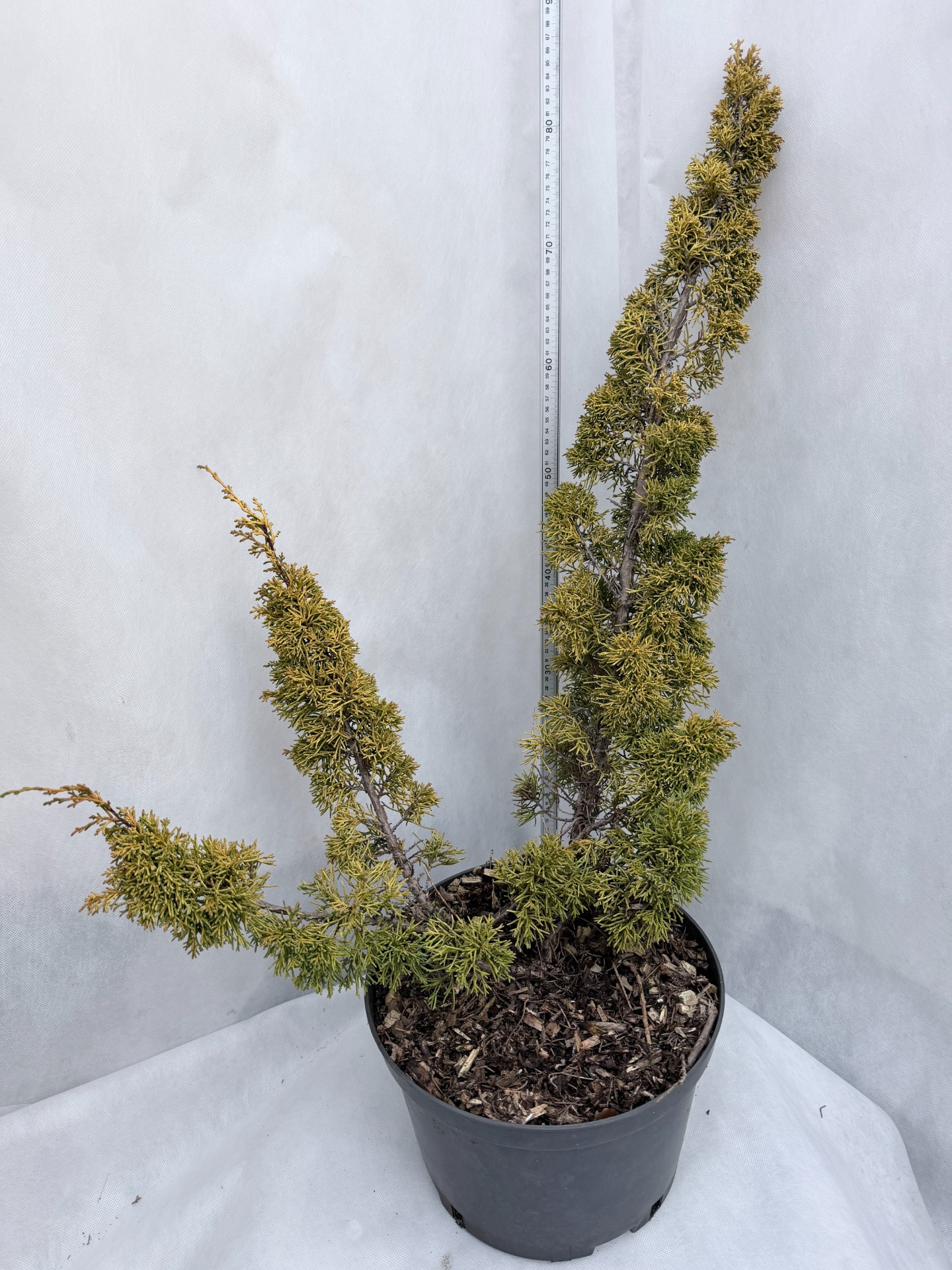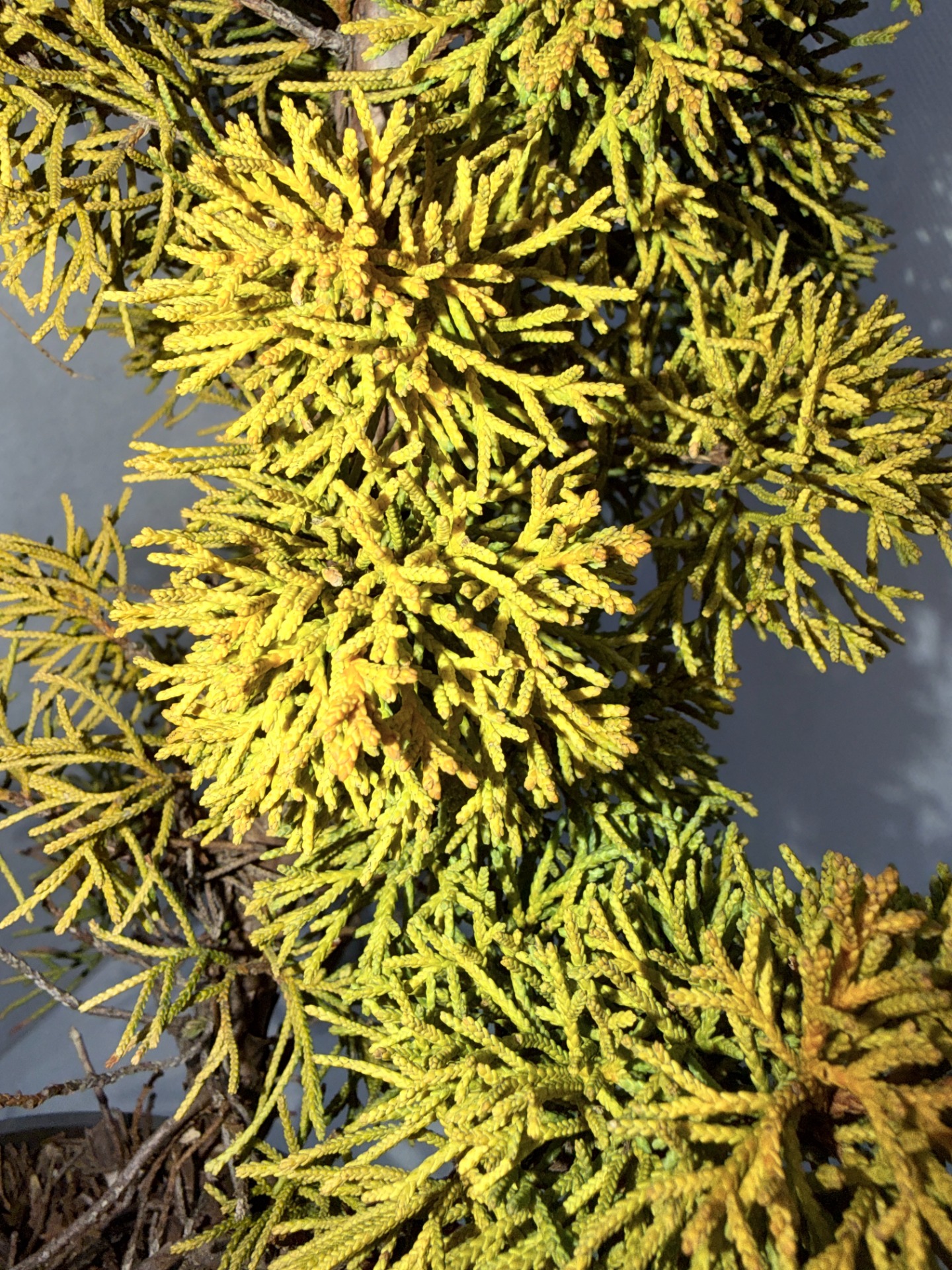Juniperus chinensis 'Plumosa' ( Jalovec čínský ) je oblíbený stálezelený jehličnan, který se vyznačuje specifickým vázovitým nebo široce nálevkovitým tvarem s mírně převislými konci větviček. Je ceněn pro své výrazné zlatožluté zbarvení. Má šupinovité, měkké jehlice, které nejsou pichlavé. Na jaře jsou jasně zlatožluté, v létě přecházejí do žlutozelené a v zimě získávají bronzový až hnědý nádech. Roste velmi pomalu. Po 10–15 letech dosahuje výšky i šířky kolem 1 metru. Vyžaduje plné slunce; v polostínu ztrácí svou hustotu a barvu. Je mrazuvzdorný a dobře snáší městské prostředí i znečištěné ovzduší. Lze tvarovat např. jako bonsai. Díky svému pomalému růstu se hodí do skalek a vřesovišť, skupinových výsadeb, do nádob na terasy nebo jako venkovní bonsai.