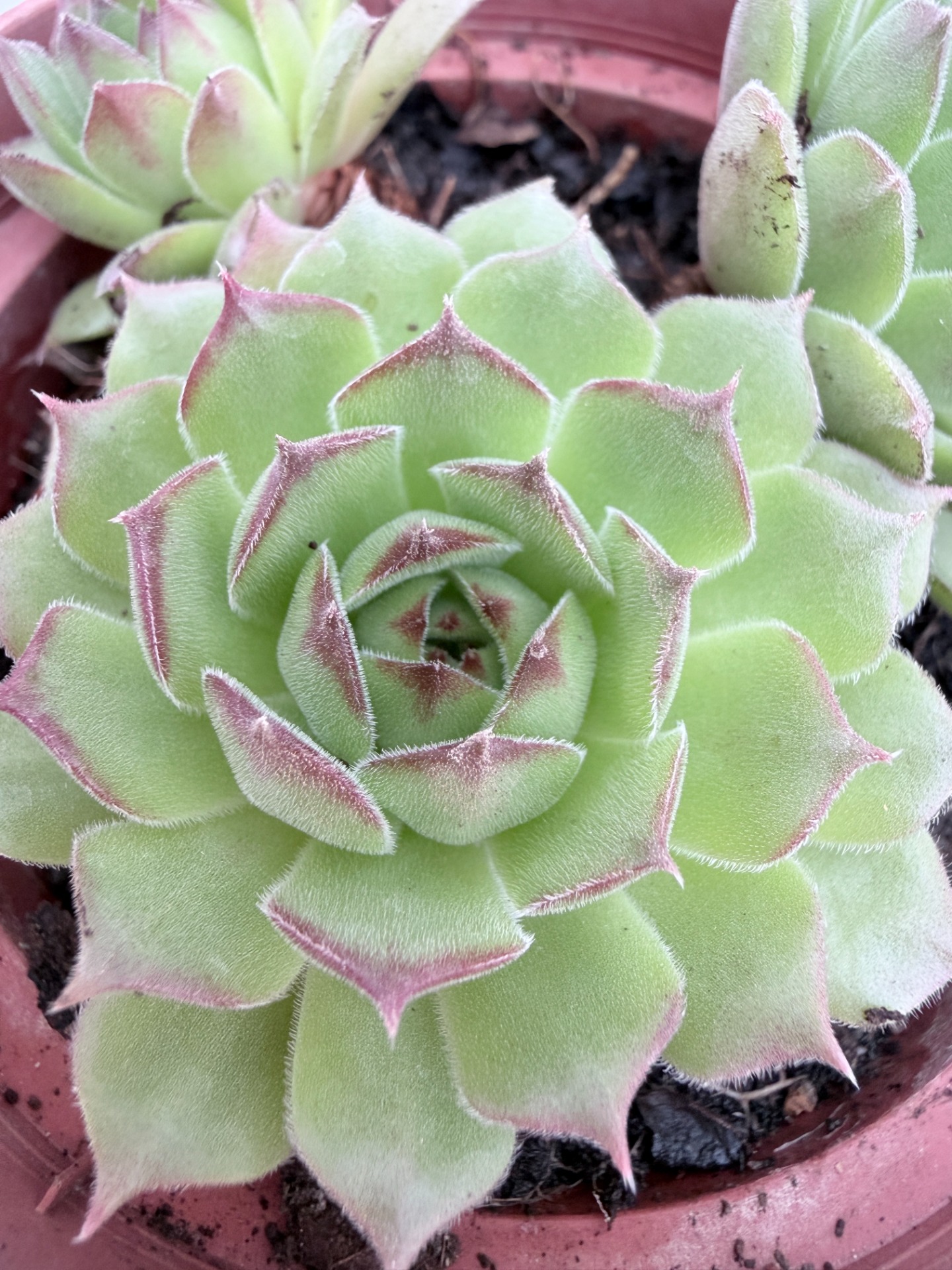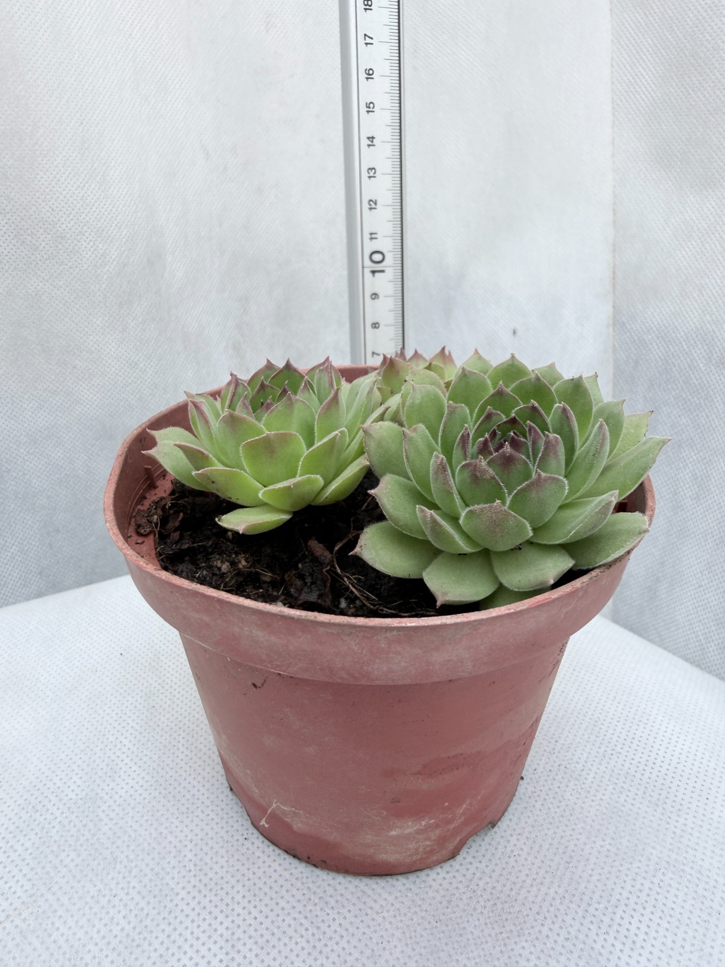 Sempervivum × hybridum (Netřesk) - sukulentní trvalky jsou ceněny pro svou mimořádnou odolnost, geometrickou krásu a velikost - dorůstají v průměru až 20 cm. Vytvářejí přízemní růžice dužnatých listů, které uchovávají vodu. Barvy se mění podle ročního období a intenzity slunce. Starší růžice v létě (červenec–září) vyhánějí vzpřímenou lodyhu s růžovými hvězdicovitými květy. Po odkvětu mateřská růžice hyne, ale mezitím vytvoří řadu dceřiných odnoží. Vyžadují plné slunce. V polostínu ztrácejí kompaktní tvar a intenzivní vybarvení. Nesnášejí přemokření, které vede k hnilobě kořenů.